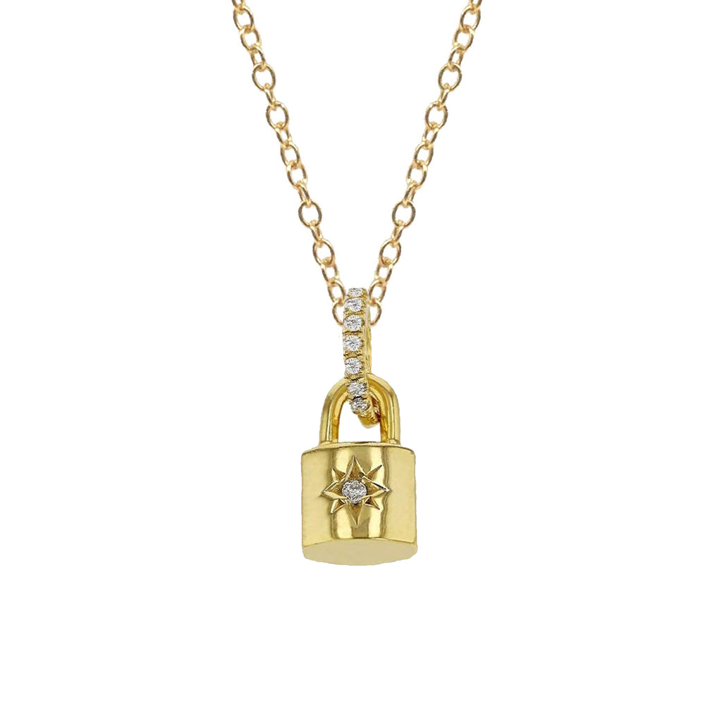 Padlock Starburst Charm Pendant CZ Gold Filled Necklace