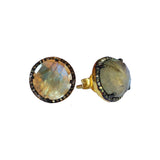 Large Labradorite & Diamond Two Tone Stud Earrings