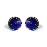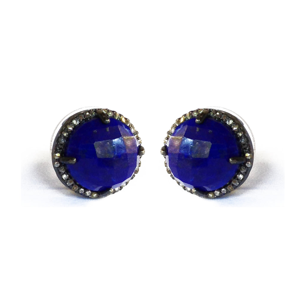 These classic-style stud earrings feature 12mm lapis stones accented with pavé diamonds, set in sterling silver with a rhodium-plated finish for enhanced durability and shine.