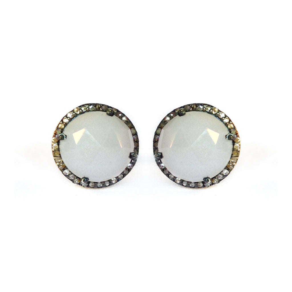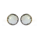 Large White Chalcedony & Diamond Stud Earrings