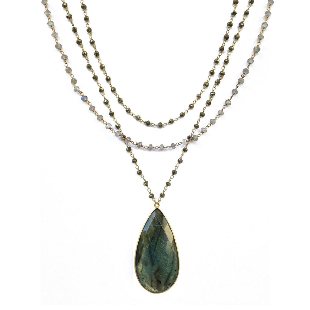 Genuine Pyrite and Labradorite Beads Hand Wire Wrapped with Sterling Silver