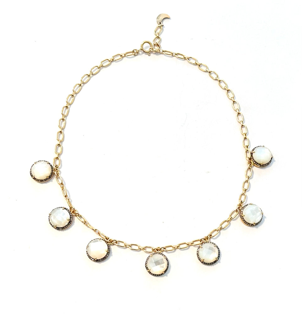 7 Charm Halo Diamond Mother of Pearl  Necklace