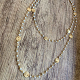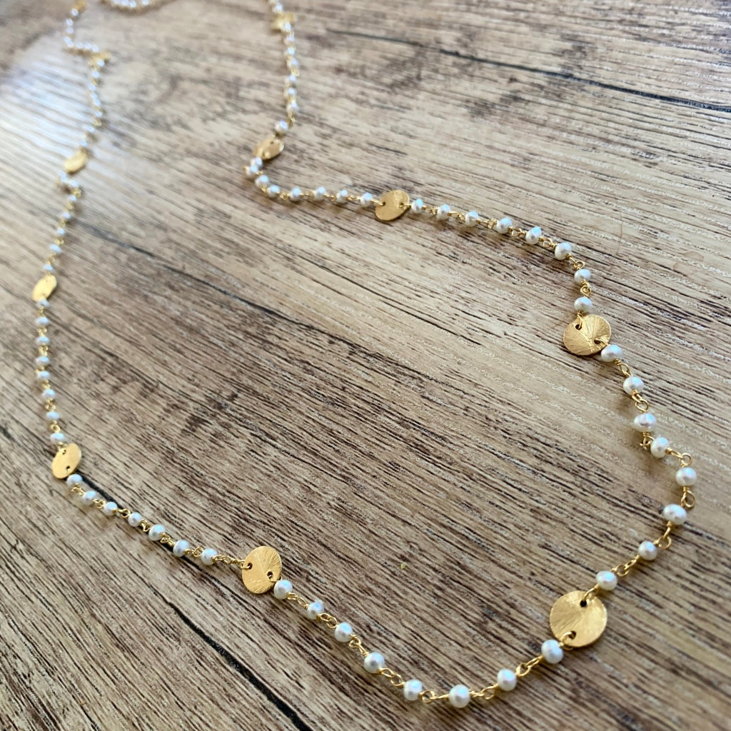 Long Necklace with Natural Pearls Beads and Gold Discs