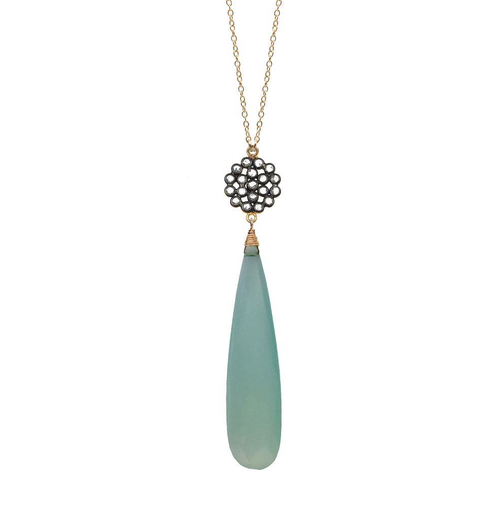 Handcrafted seafoam chalcedony flower necklace featuring: