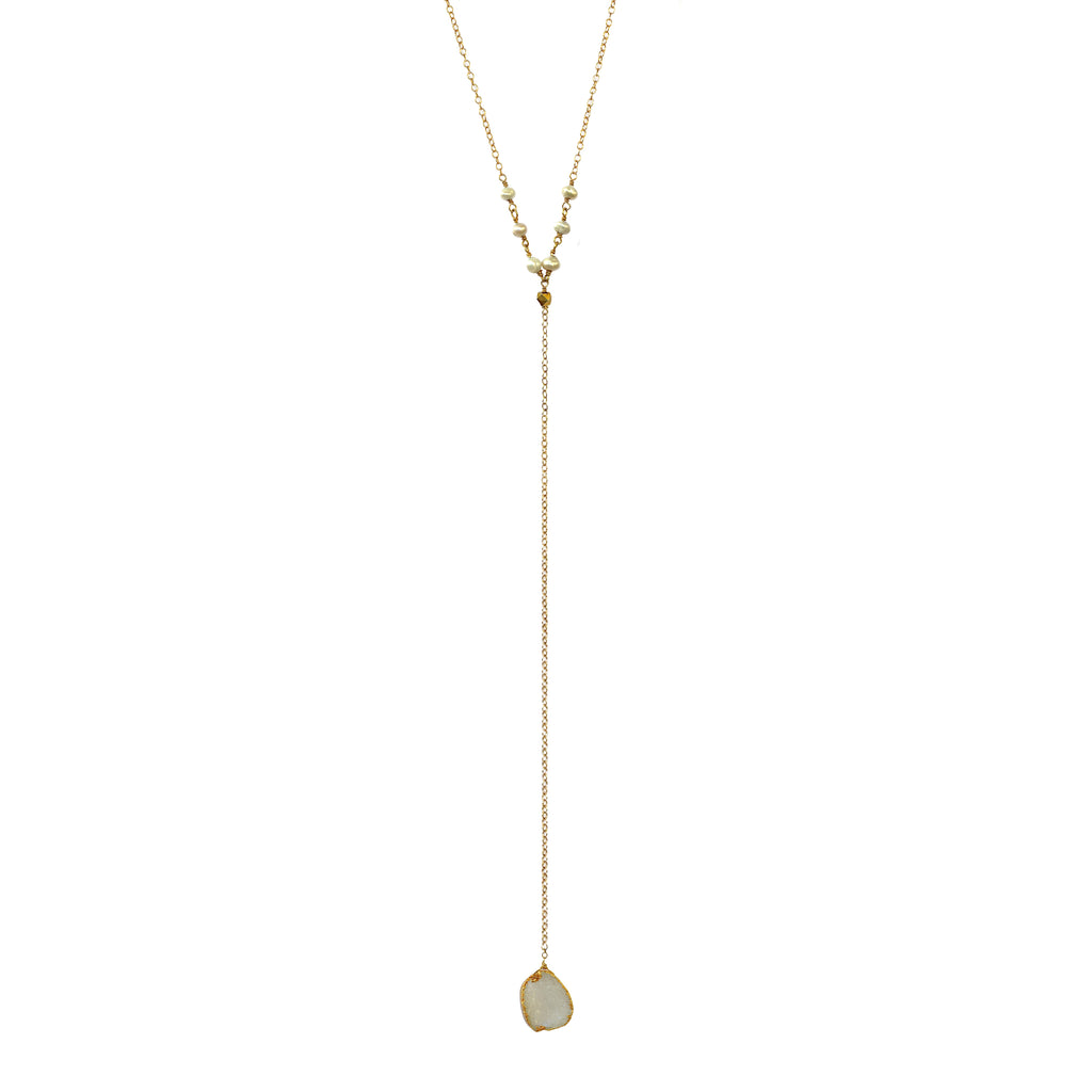 Druzy and Pearl Drop Y Necklace