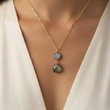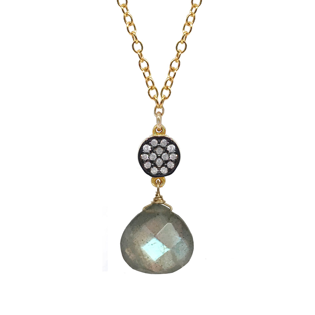 Petite Labradorite Necklace with White Topaz Pave Accent - Sterling Silver Gold Filled