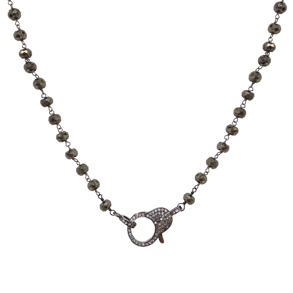 White Topaz Pyrite Charm Holder Sterling Silver Necklace