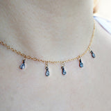 Diamond Drop Choker Sterling Silver Gold Fill Necklace