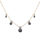 5 Diamond Pave Circle Oxidized Sterling Silver Charms.