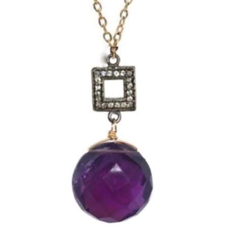 This stunning amethyst pendant necklace showcases the rich, royal purple hues that have captivated jewelry lovers for centuries. The 14-15mm round faceted amethyst gemstone catches the light beautifully, displaying deep violet tones with brilliant clarity.