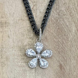 White Topaz Flower Necklace | Sterling Silver Pendant | 16" Gunmetal Chain