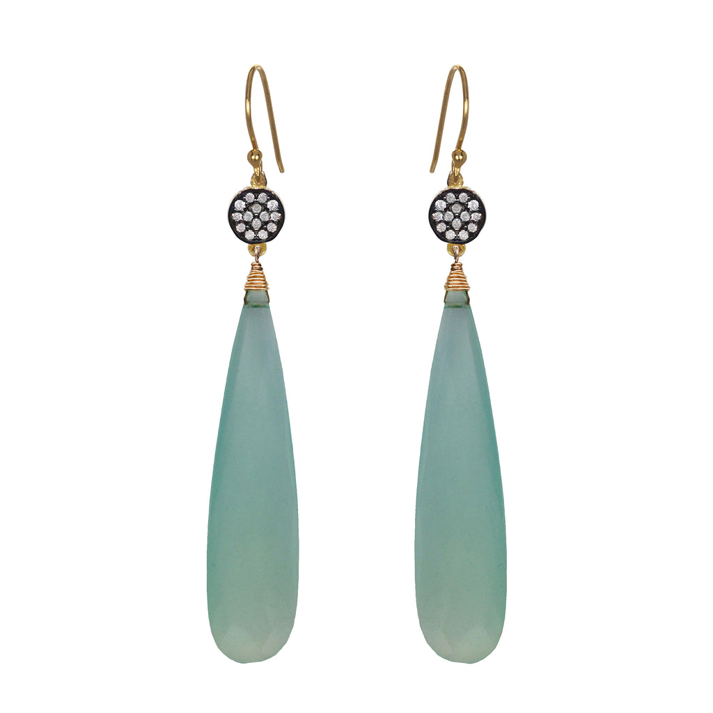 Statement Long Teardrop Seafood Chalcedony Gemstones.