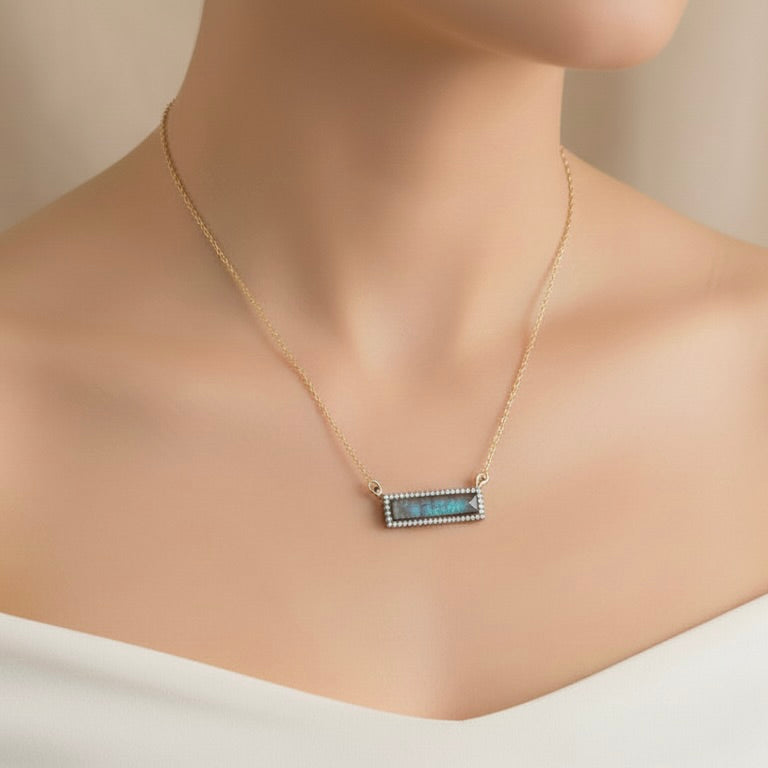 • Labradorite White Topaz Bar Gold Filled Necklace